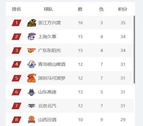 CBA最新排名:山东进入四强,首钢第七,辽宁跌出季后赛