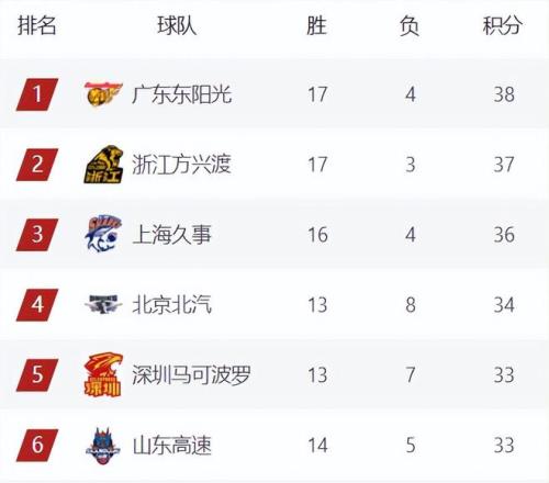 在击败吉林后,广东队目前暂时又来到了积分榜第一的位置,当前第一阶段常规赛只剩最后3轮,广东队17胜4负拿到38分,北京本轮再度翻车,已经落后广东4个积分,山东、深圳还有3轮比赛要打,就算后面全胜也没法来威胁广东前三位置,并且山东和广州的补赛被调到三月份,也就是说,哪怕接下来广东队遭遇了2连败,也能在第一阶段结束时保住前3名的位置。