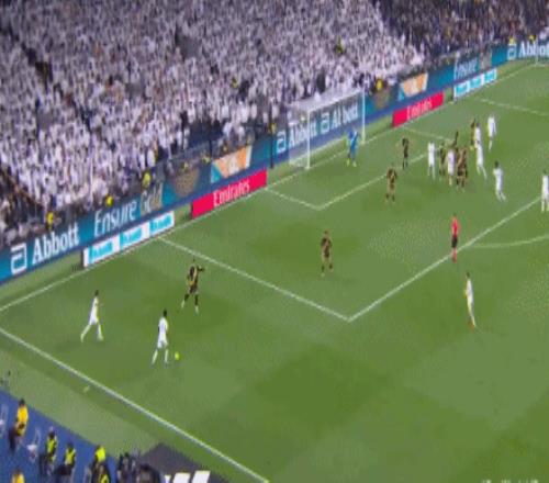 第85分钟,塞瓦略斯精准传中,卡马文加甩头攻门击中立柱弹出