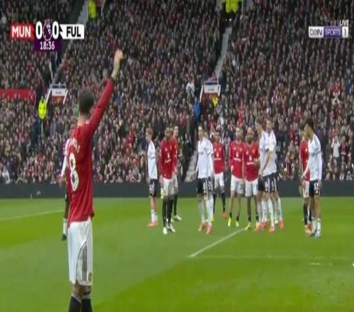 比赛第19分钟,布鲁诺-费尔南德斯任意球助攻卡塞米罗破门,曼联1-0领先。
