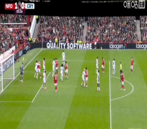 在诺丁汉森林vs水晶宫的比赛中,森林通过大力界外球制造混乱,吉布斯-怀特一蹴而就。