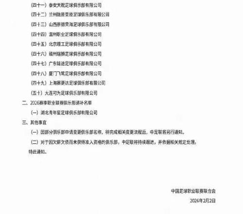 这份公告显示,广西平果失去准入资格,湖北青年星递补中乙。2025赛季广西平果征战中甲赛场,最终以6胜7平17负积25分排名第15,降入中乙。